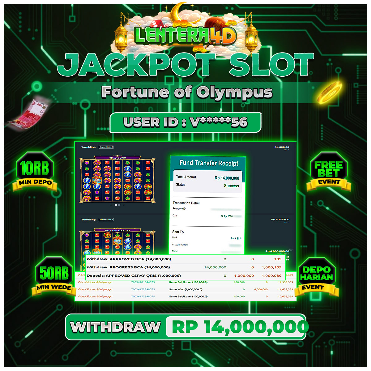 TOTAL KEMENANGAN : Rp 14.000.000,-