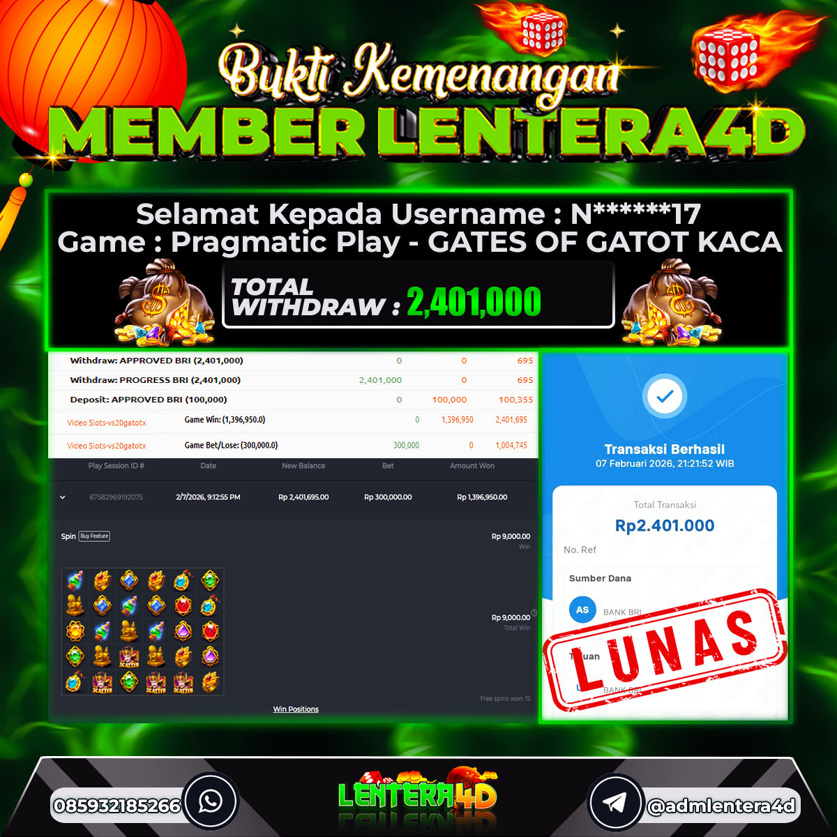 JACKPOT MAIN GATOT KACA 07 FEBRUARI 2026, Jackpot Slot Gacor, Kemenangan Slot, Bukti Kemenangan Slot, Kemenangan Slot Pragmatic Play, Menang Slot online, Slot Gacor, Situs Aman Terpercaya, WD Berapapun Pasti DI Bayar Tuntas, Maxwin Slot Online.