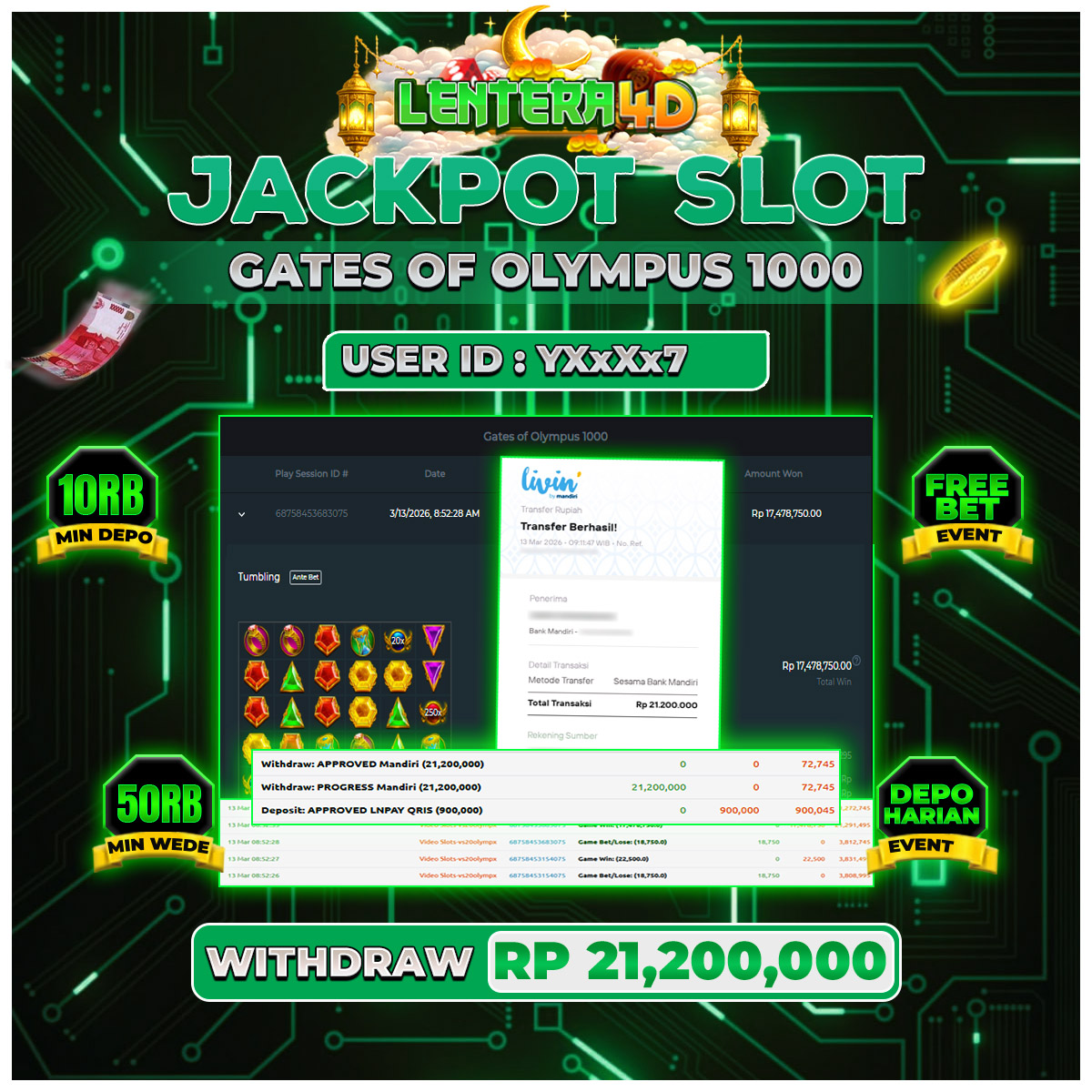 TOTAL KEMENANGAN : Rp 21.200.000,-