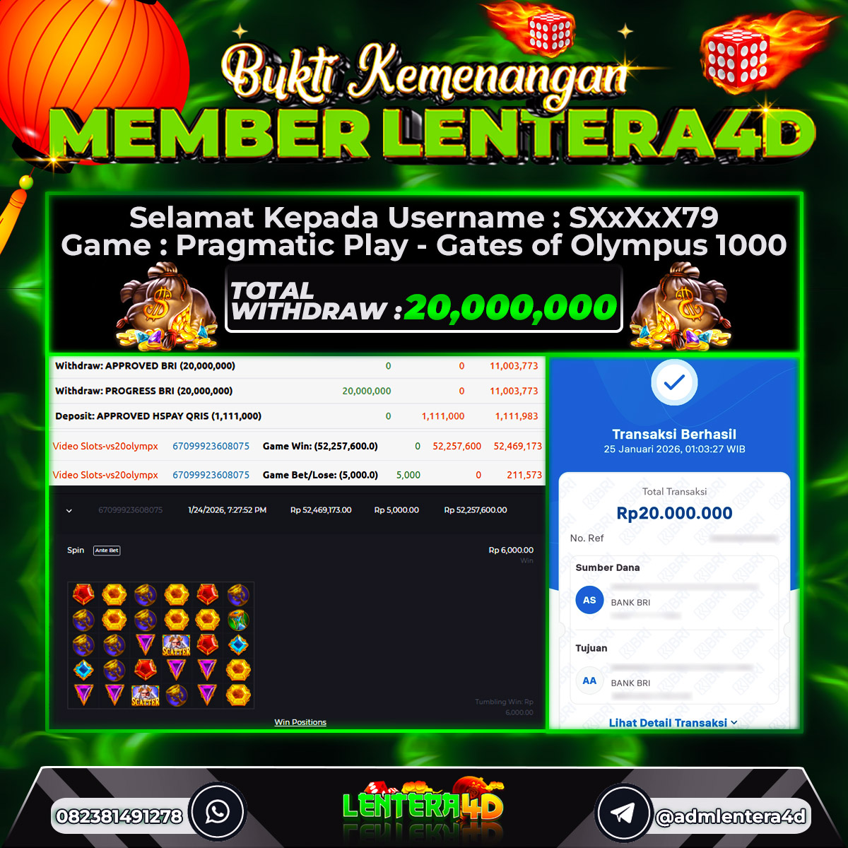 TOTAL KEMENANGAN : Rp. 20.000.000,-