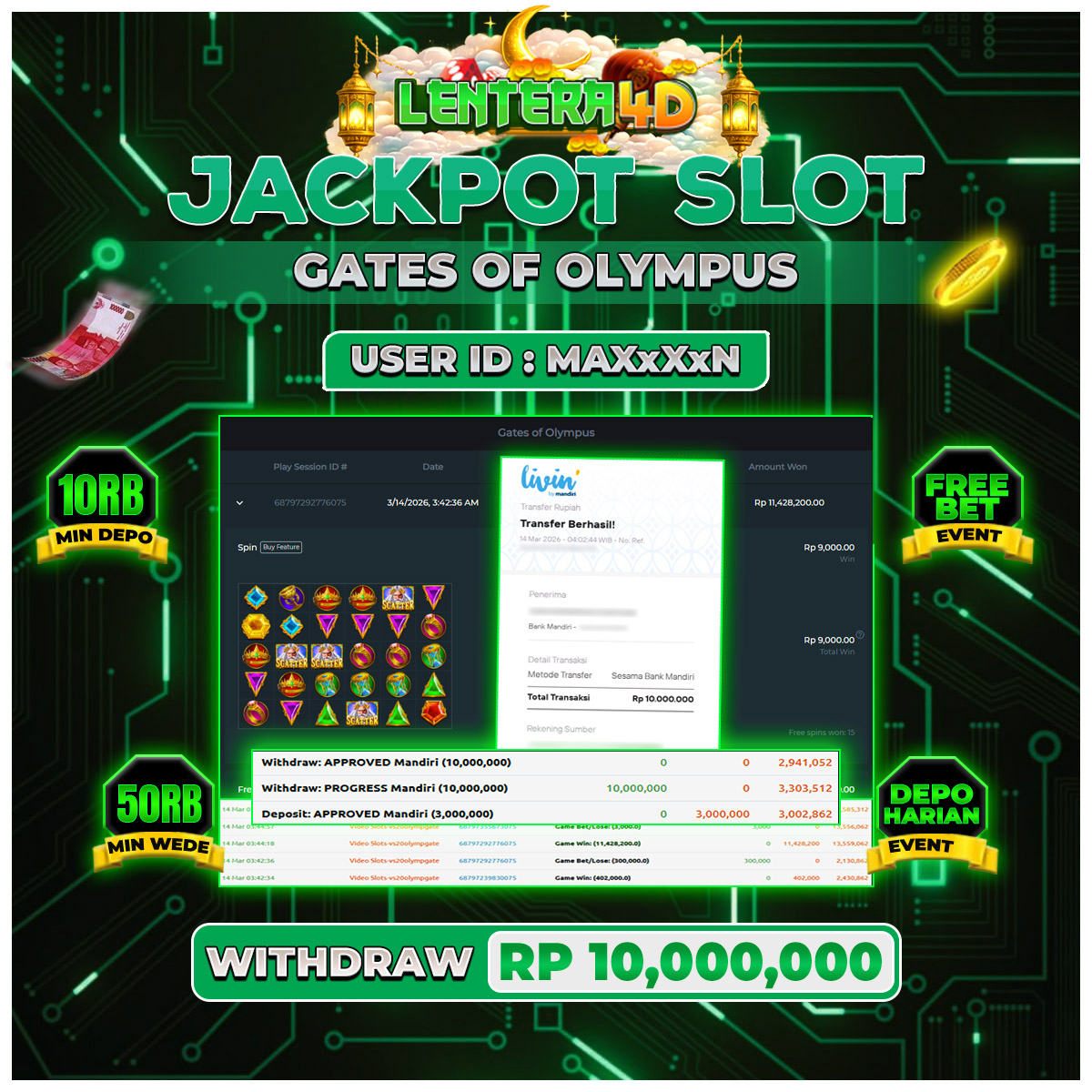 TOTAL KEMENANGAN : Rp 10.000.000,-