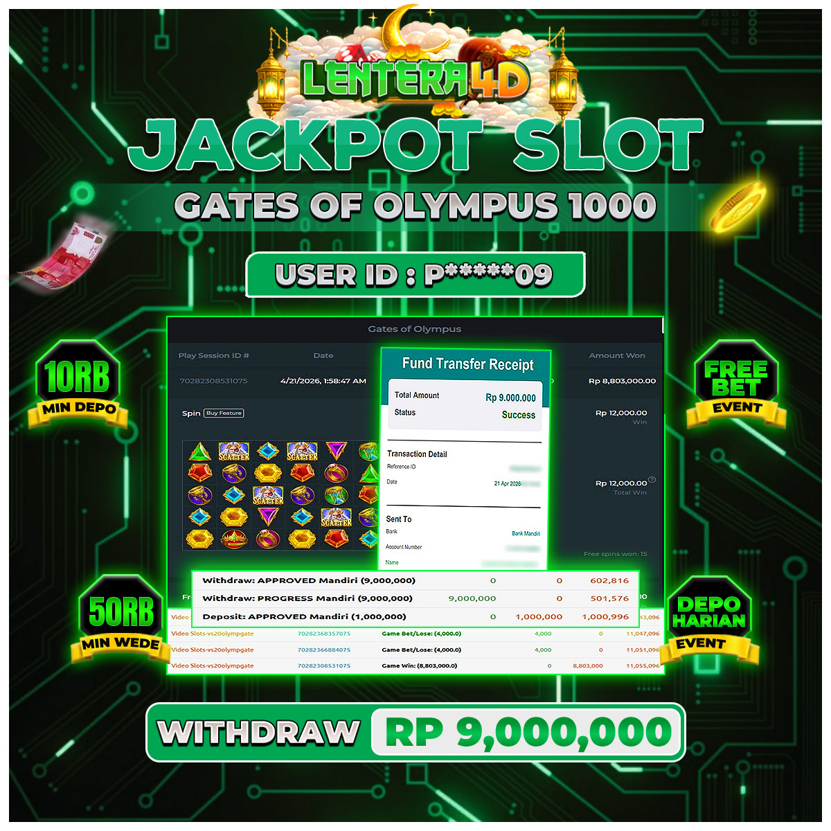 TOTAL KEMENANGAN : Rp 9.000.000,-