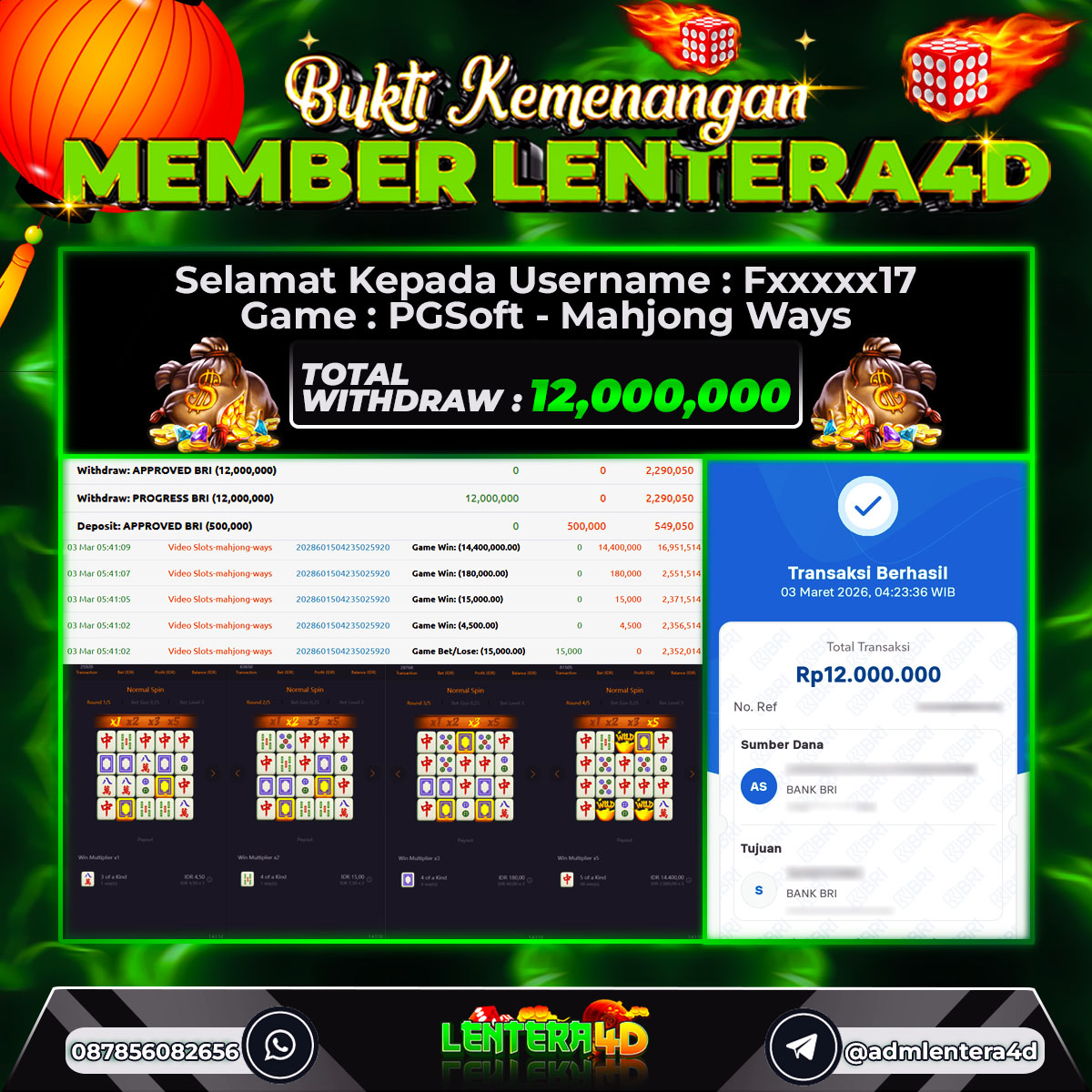 TOTAL KEMENANGAN : Rp 12.000.000,-