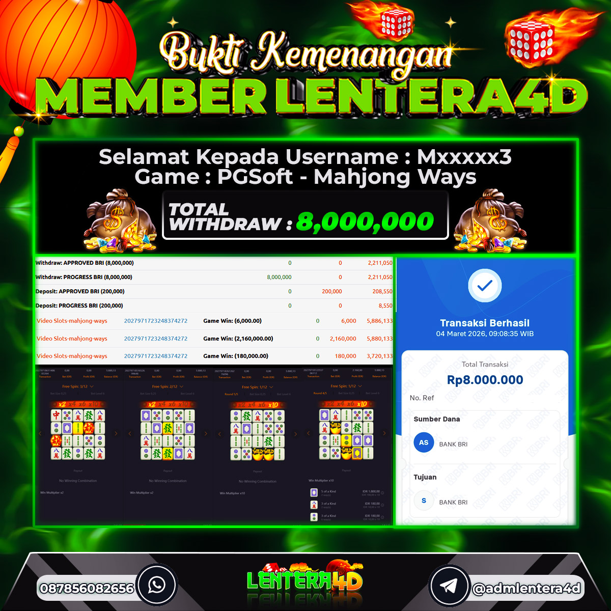 TOTAL KEMENANGAN : Rp 8.000.000,-
