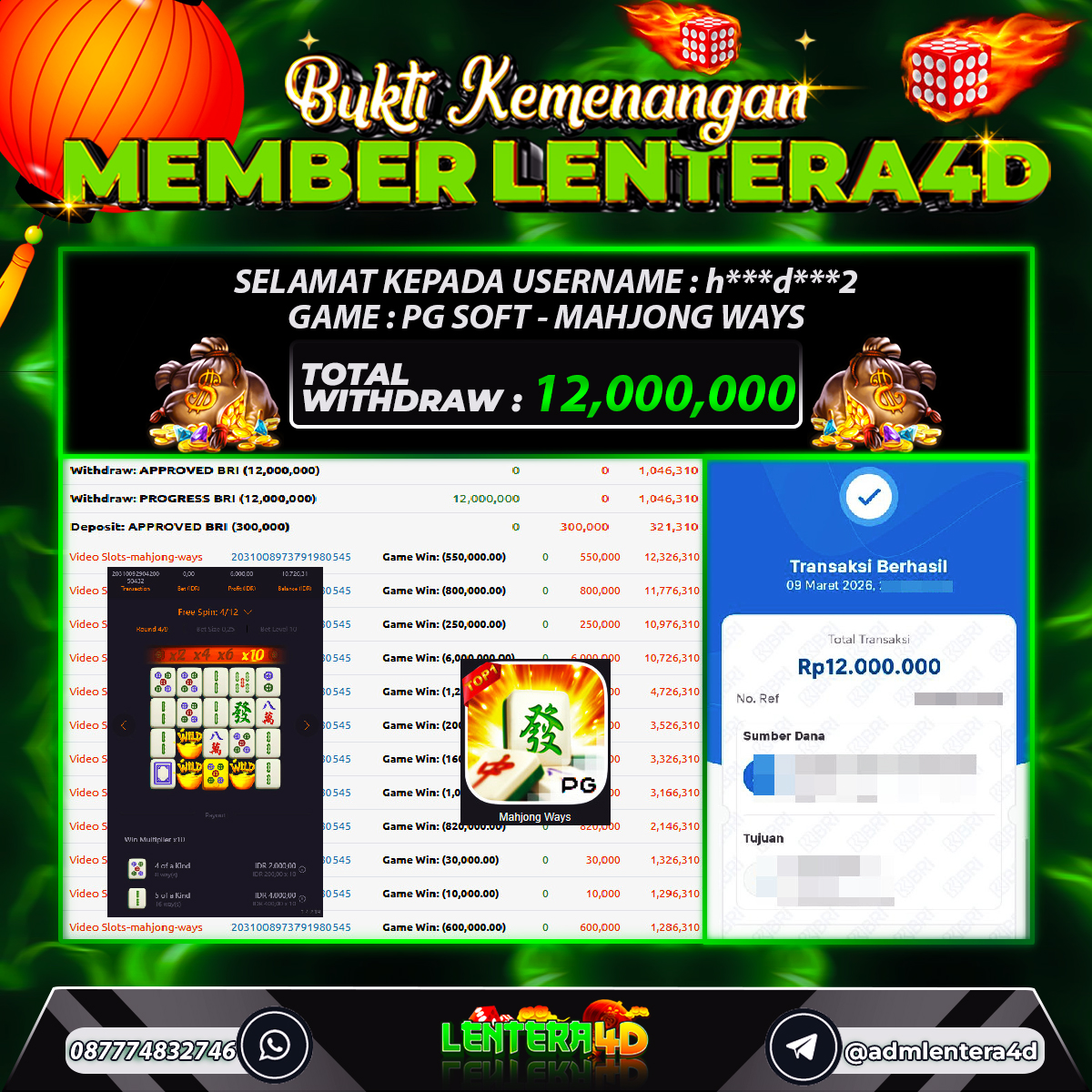 TOTAL KEMENANGAN : Rp 12.000.000,-