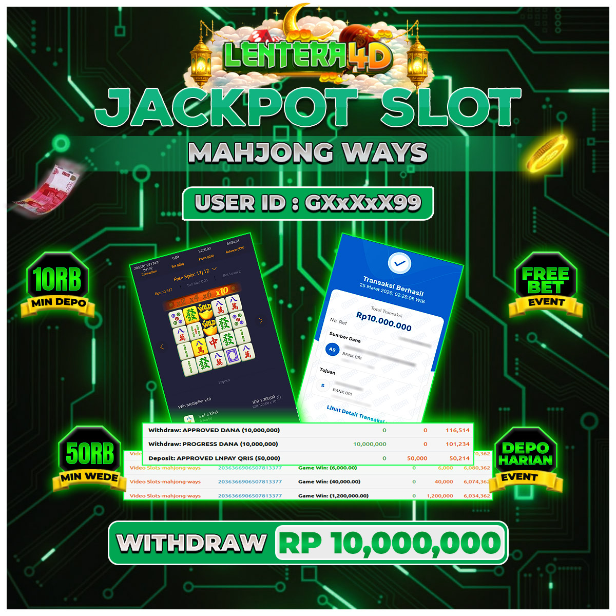 Setiap hari, member Lentera4D berhasil meraih jackpot besar dari berbagai provider slot ternama yang kami sediakan, seperti Pragmatic Play, Habanero, PG Soft, dan masih banyak lagi. Kami secara rutin menampilkan bukti screenshot atau rekapan kemenangan yang berhasil diraih, mulai dari kemenangan ratusan ribu hingga puluhan juta rupiah. Semua slip kemenangan ini kami hadirkan untuk membuktikan bahwa di Lentera4D, peluang menang itu nyata.