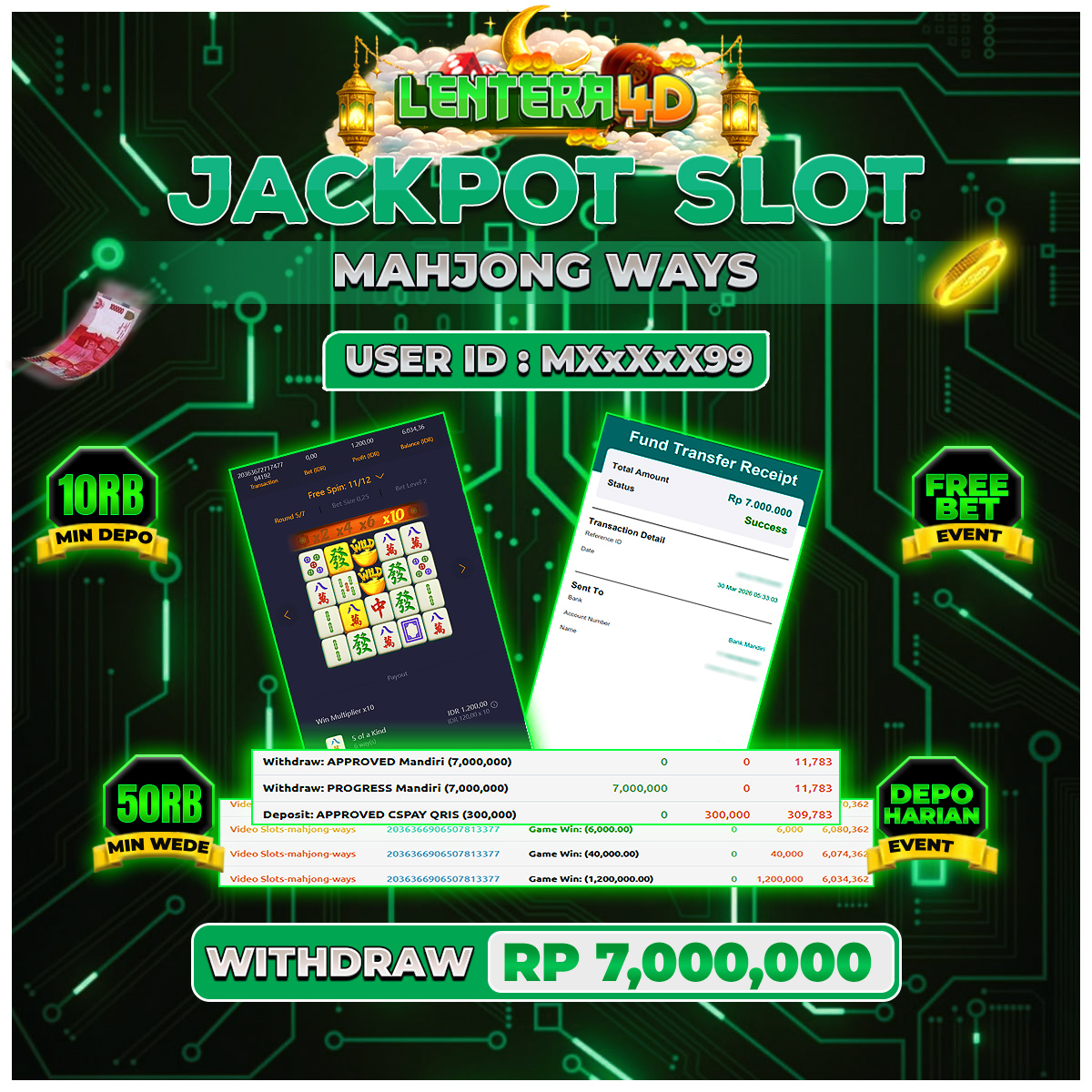 TOTAL KEMENANGAN : Rp 7.000.000,-