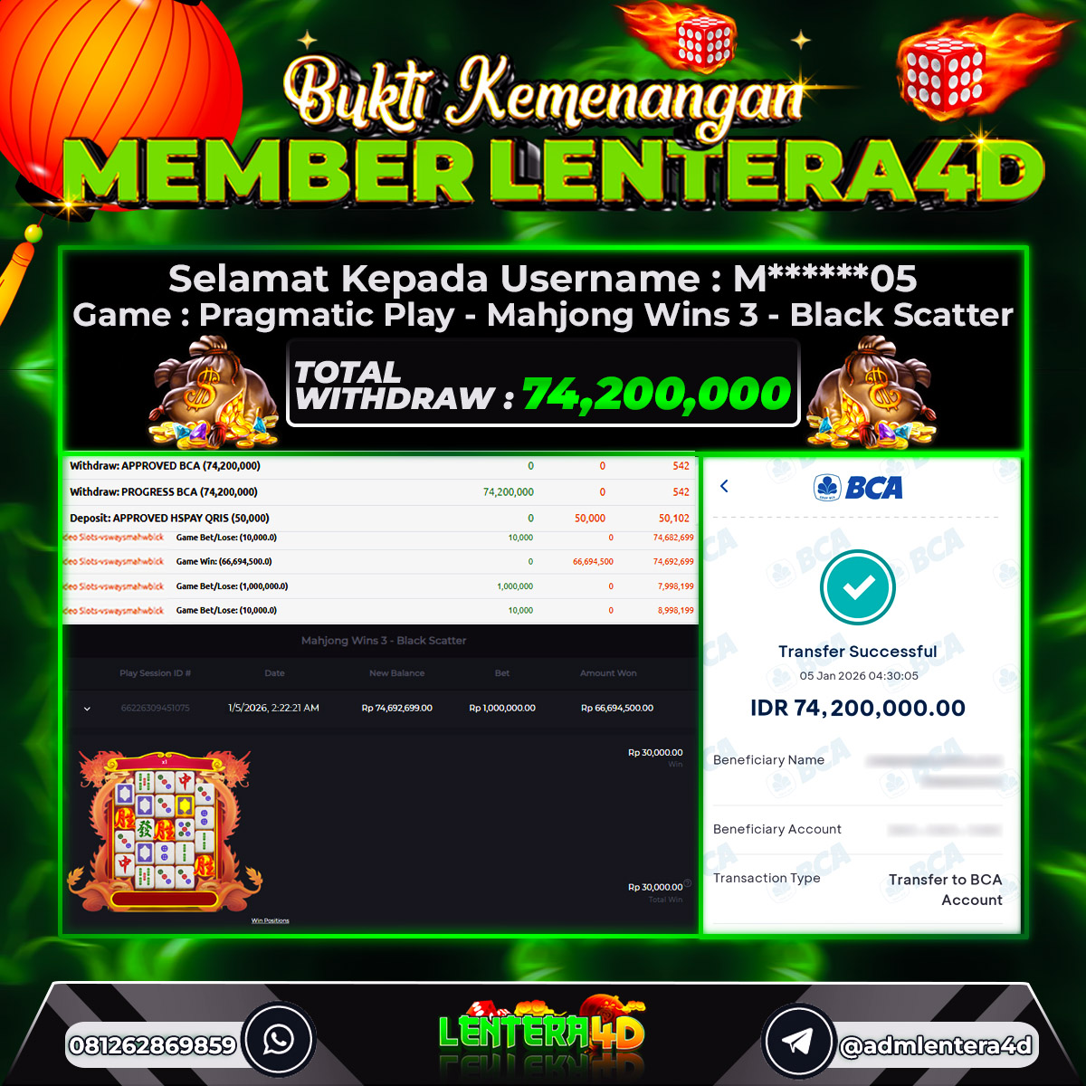 JACKPOT MAHJONG WINS 3 BLACK SCATTER 05 JANUARI 2025, Jackpot Slot Gacor, Kemenangan Slot, Bukti Kemenangan Slot, Kemenangan Slot Pragmatic Play, Menang Slot online, Slot Gacor, Situs Aman Terpercaya, WD Berapapun Pasti DI Bayar Tuntas, Maxwin Slot Online.