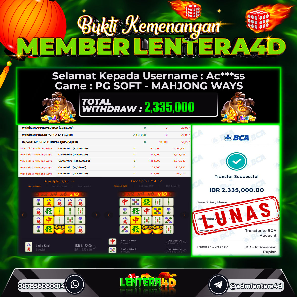 TOTAL KEMENANGAN : Rp2,335,000,-