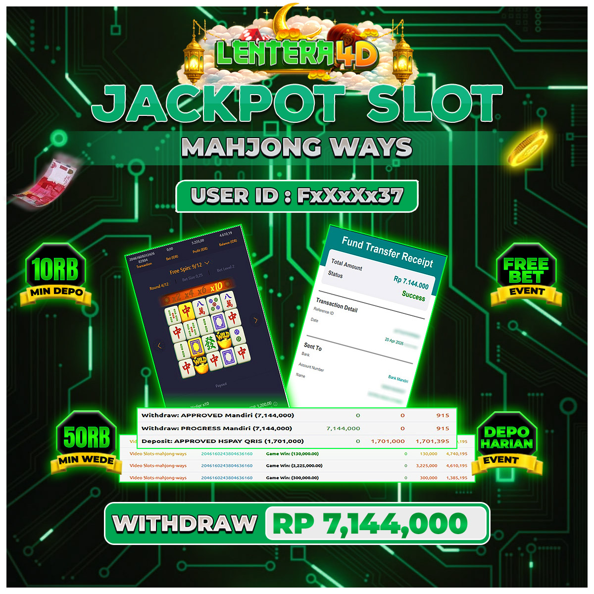 Lentera4D dikenal sebagai situs terpercaya yang selalu menghadirkan pengalaman bermain slot online yang aman, fair, dan berlisensi resmi. Di sini, kami tidak hanya sekadar memberikan janji, tapi bukti nyata berupa slip kemenangan yang dapat Anda lihat secara langsung.