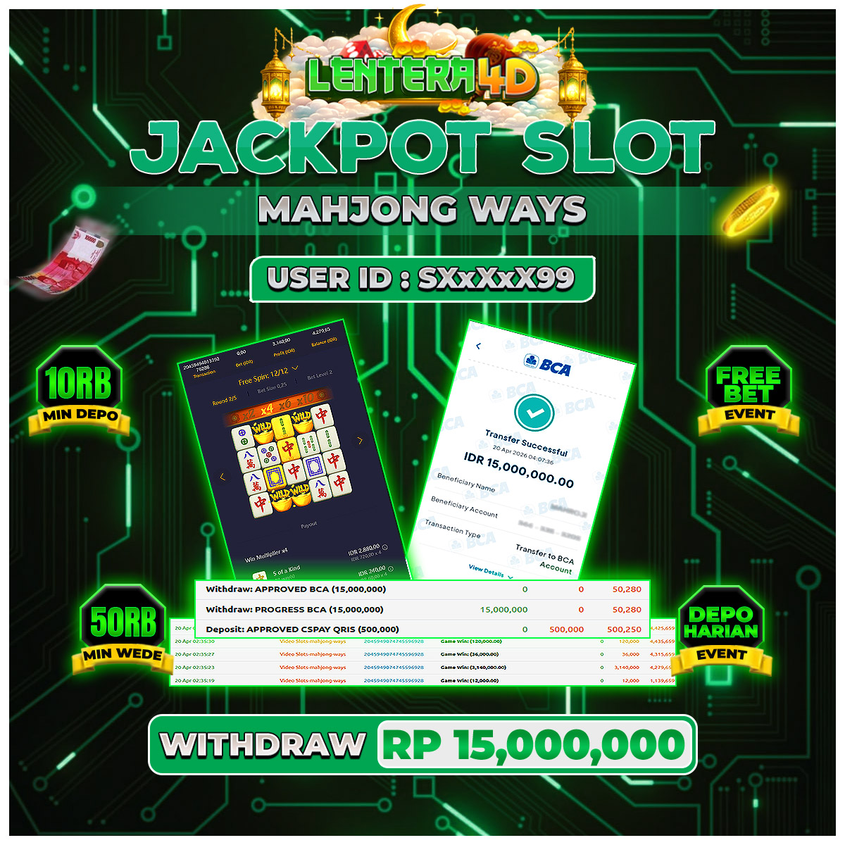 TOTAL KEMENANGAN : Rp15,000,000,-