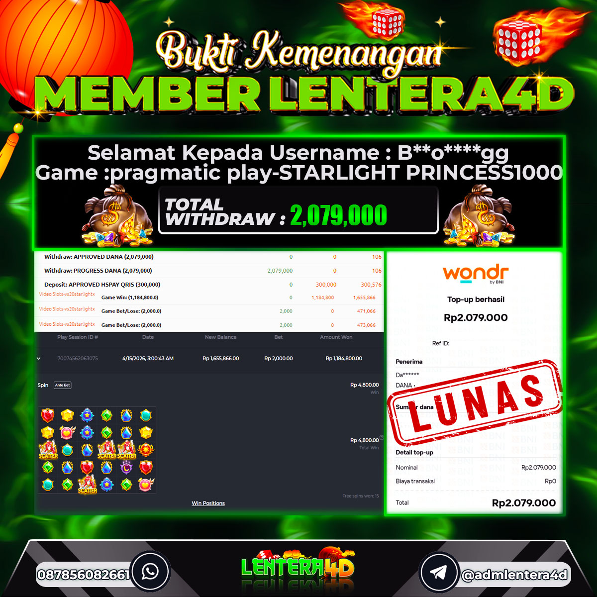 TOTAL KEMENANGAN : Rp 2,079.000,-