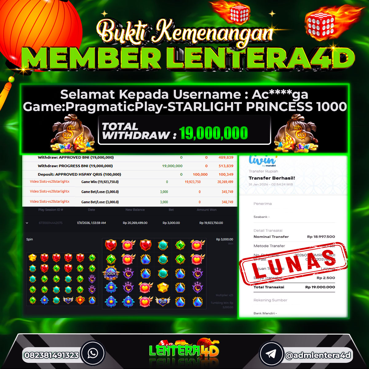 TOTAL KEMENANGAN : Rp 19.000.000,-
