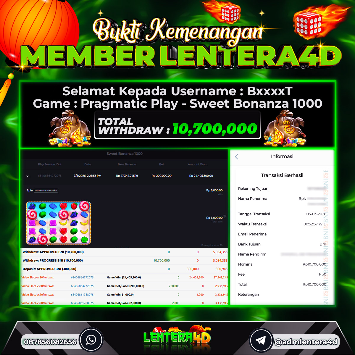 TOTAL KEMENANGAN : Rp 10.700.000,-