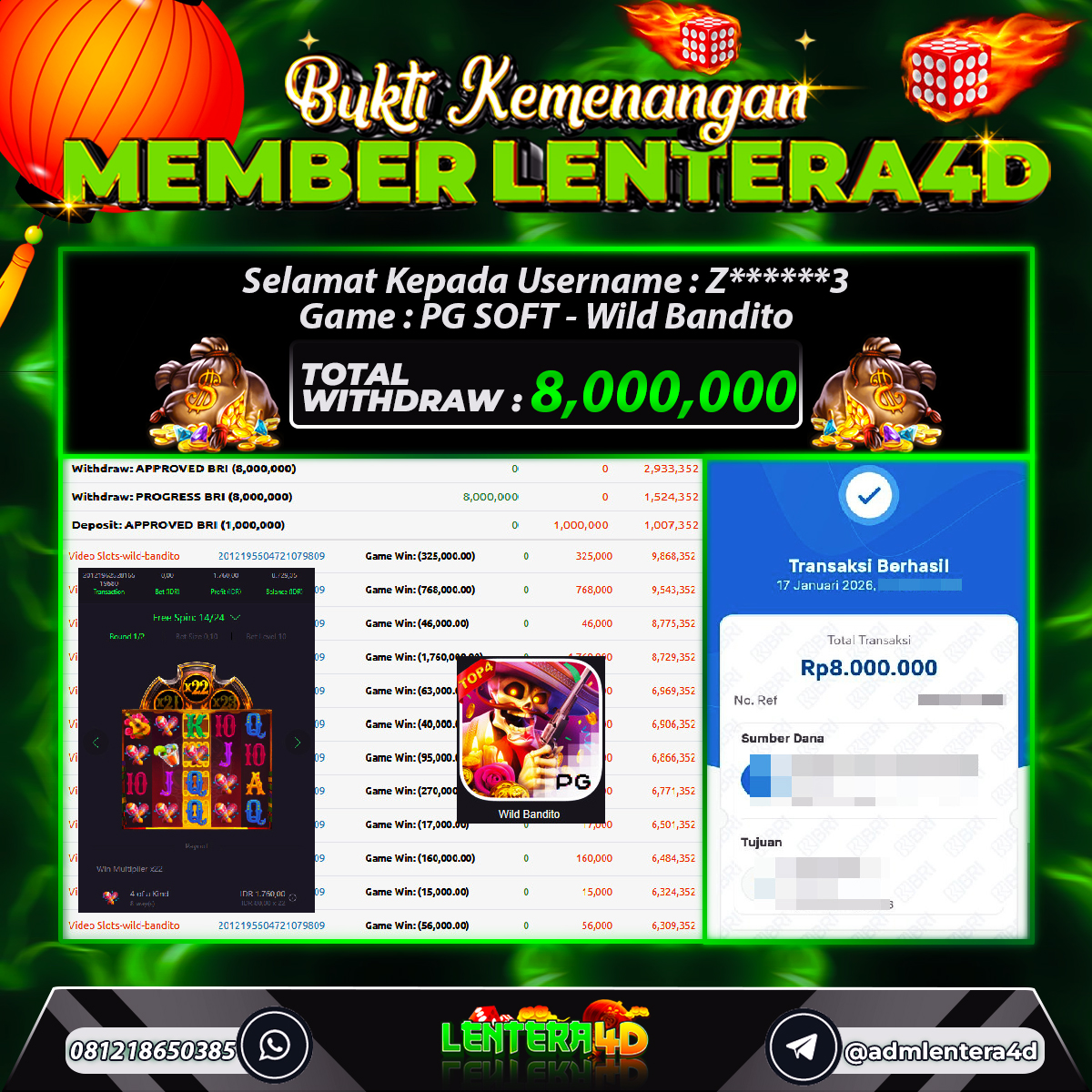 JACKPOT MAIN WILD BANDITO 17 JANUARI 2025
