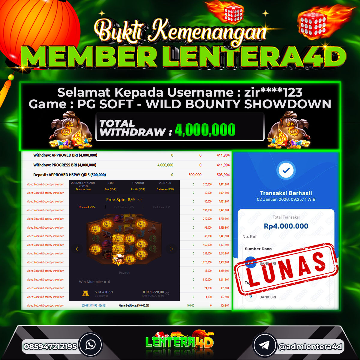 JACKPOT MAIN WILD BOUNTY SHOWDOWN 02 JANUARI 2025