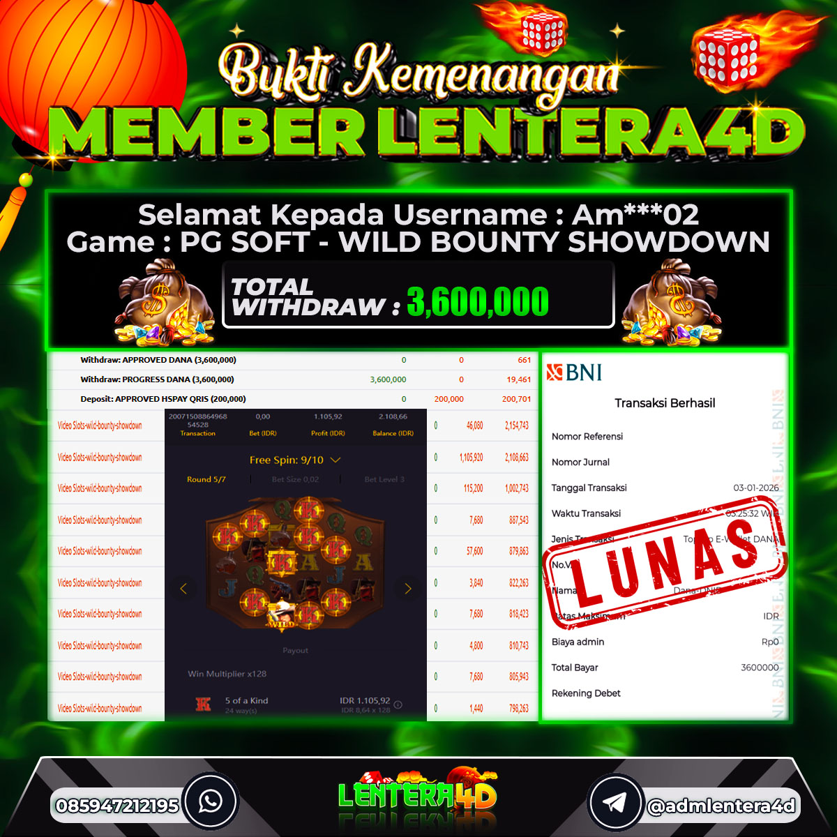 JACKPOT MAIN WILD BOUNTY SHOWDOWN 03 JANUARI 2025